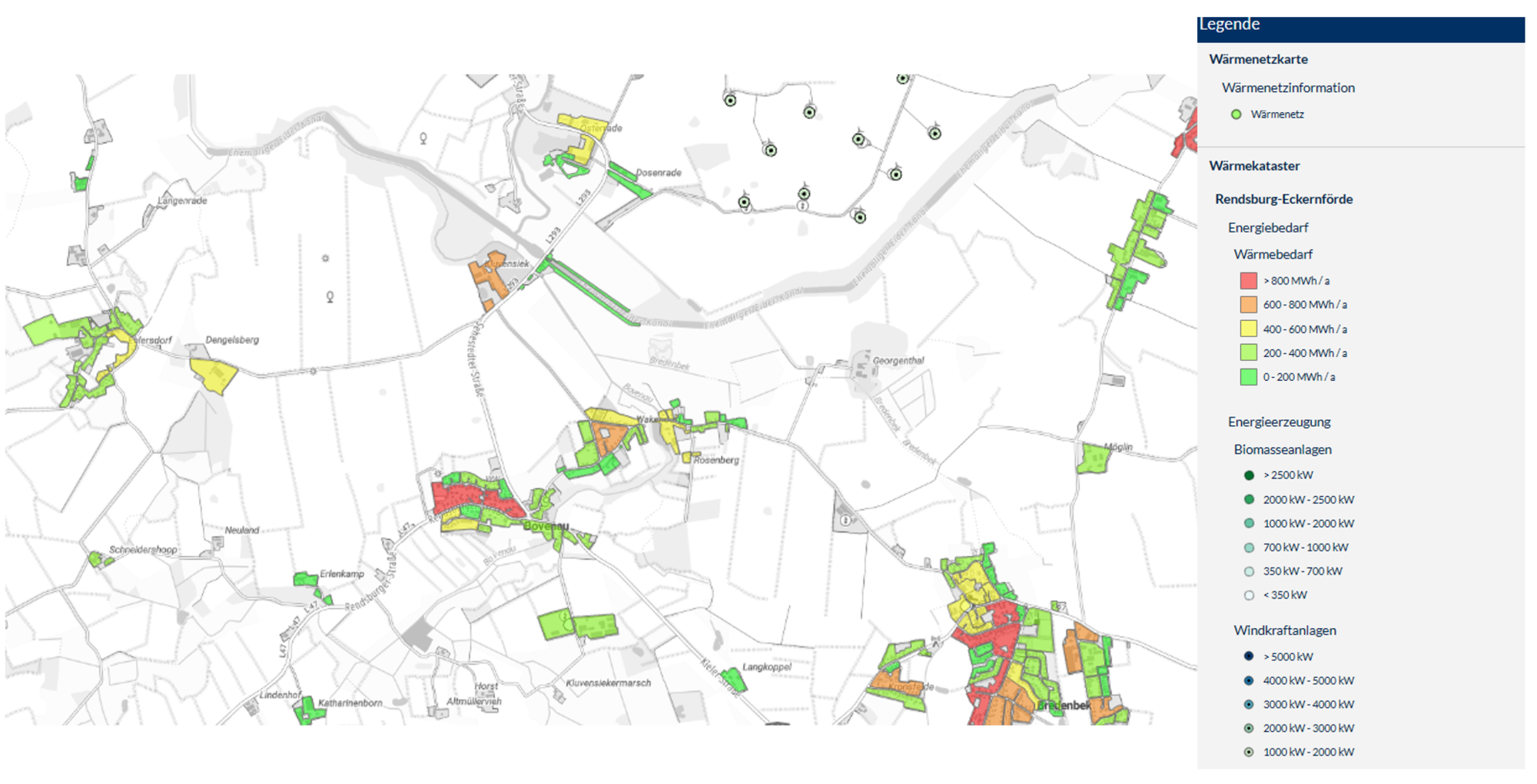 Um die Städte und Gemeinden im Kreis Rendsburg-Eckernförde bei diesem Transformationsprozess zu unterstützen, hat die Klimaschutzagentur ein kreisweites Wärmekataster erstellen und im Digitalen Atlas Nord veröffentlichen lassen. Es erfasst systematisch alle Energie- und Wärmebedarfe sowie ausgewählte erneuerbare Wärmequellen.